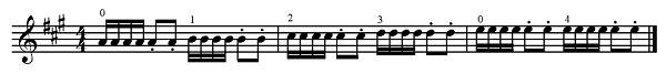 Nhịp 5: ngón 4 bấm nốt E, sau khi thực hiện xong nhịp này thì bắt đầu lại vòng mới từ nhịp 1 tới nhịp 5.
