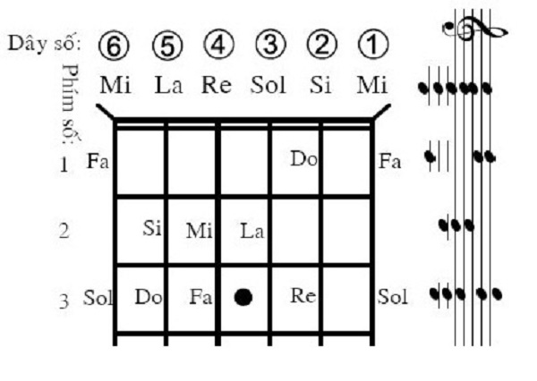 Xem hình ảnh để biết thêm vị trí các nốt nhạc: