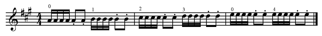 • Nhịp 5: Ngón 4 bấm nốt E, sau khi thực hiện xong nhịp này thì bắt đầu lại vòng mới từ nhịp 1 đến nhịp 5.